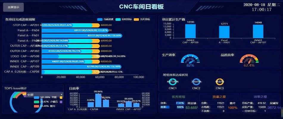 • 车间数字看板:动态展示计划达成率、设备OEE、不良品热力图,支持多层级权限视图(如班组/车间/工厂)。