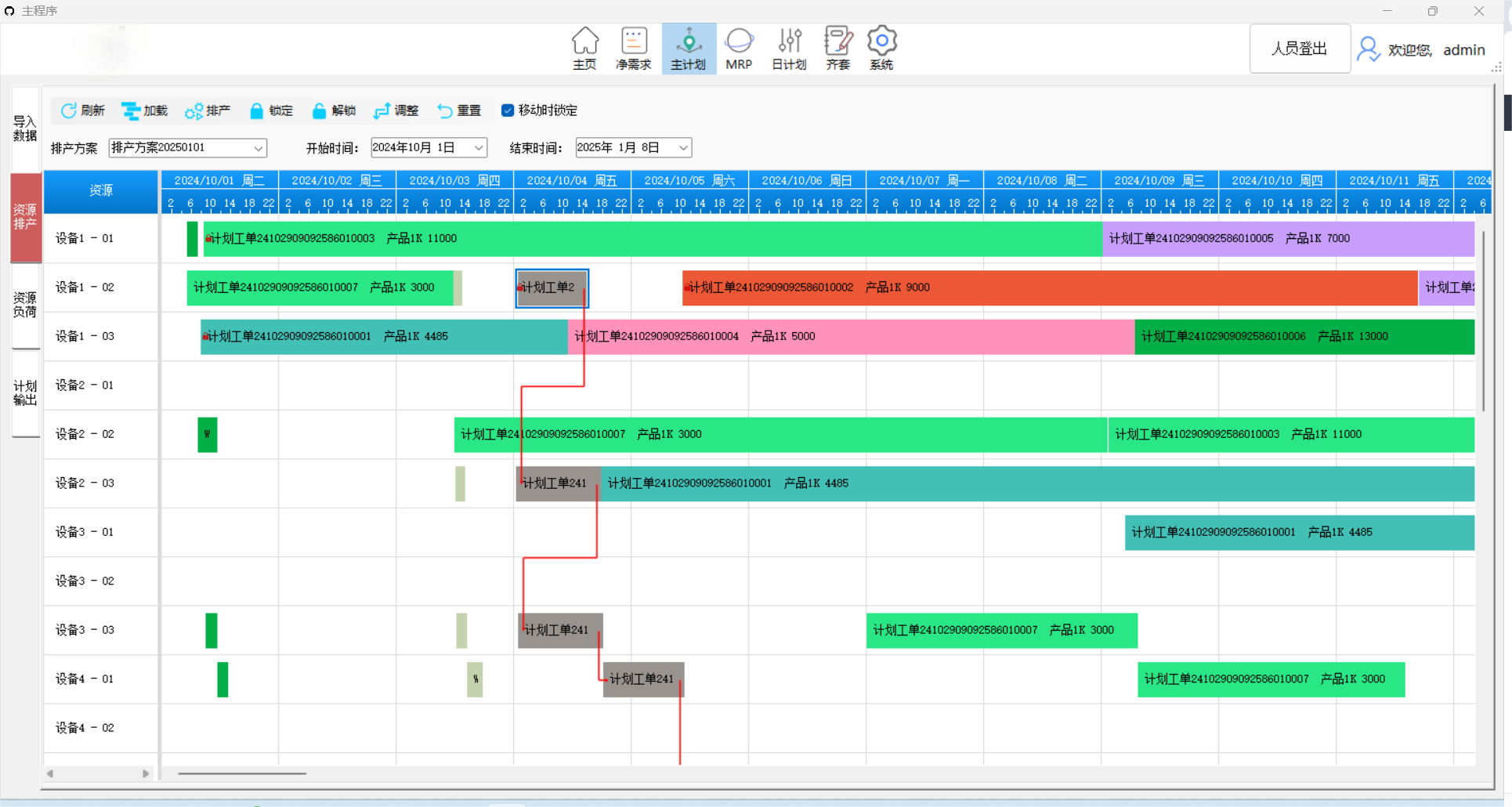 • 多目标优化引擎:平衡交期优先、成本最低、产能均衡等多维度目标,适配不同生产策略。